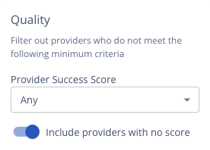 To exclude providers without a Provider Success Score, use the toggle within the Quality Filter on the new Provider Match page.