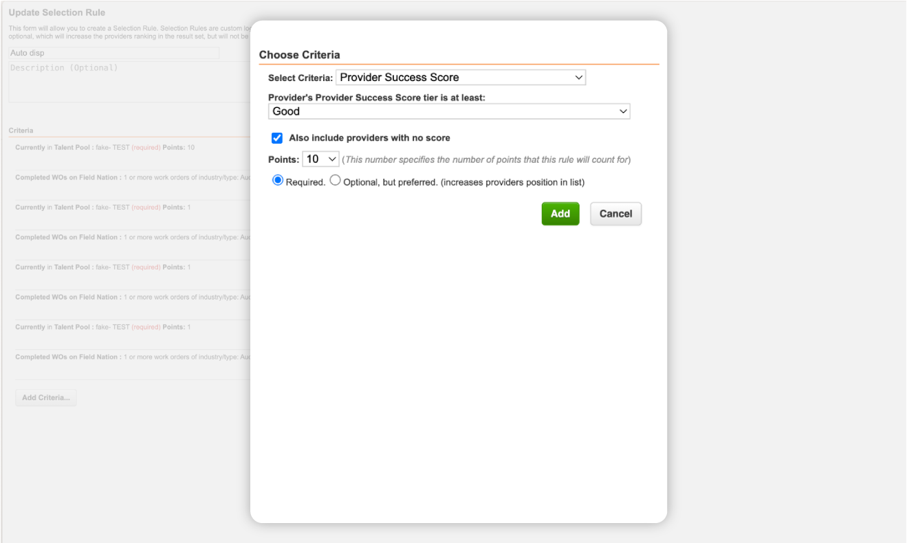 The Provider Success Score (PSS) is now available in Custom Selection Rules for both Auto Dispatch and manual vetting. Star ratings have been replaced with the PSS in all Custom Selection Rules that previously used them.