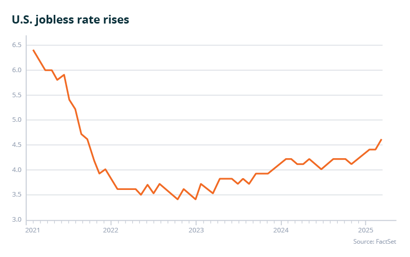 - Unemployment is rising into 2026, reaching 4.4-4.5% as job growth slows