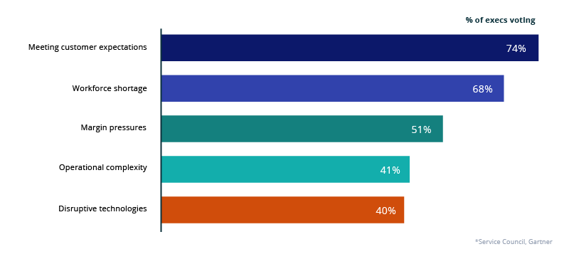 - Meeting customer expectations is the leading challenge, cited by 74% of field service leaders