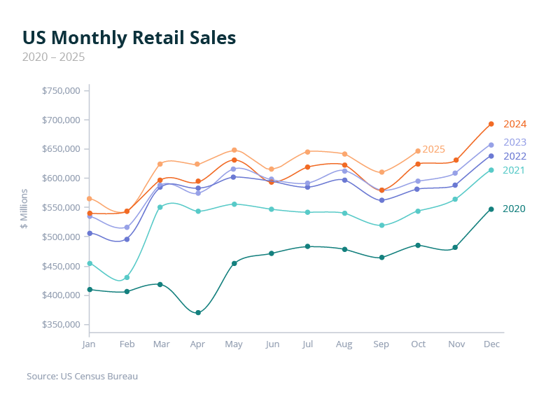 - The National Retail Federation reported 2025 holiday sales grew 4.1%, pushing total holiday spending to just over $1 trillion and reflecting resilient consumer spending
